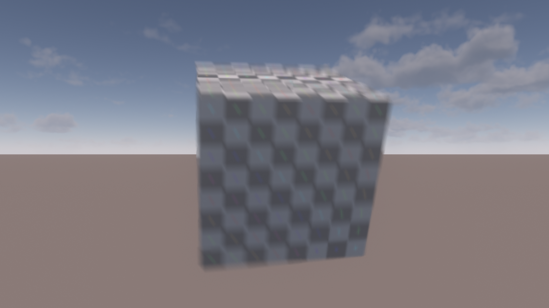 In this example, the blur on the top of the cube looks much better. Some other areas have been improved as well. Next is an example of the blurry background next to sharp foreground issue. The background is moving vertically. Notice how the horizon line turns sharp in an unnatural way when approaching the cube in the combined version.